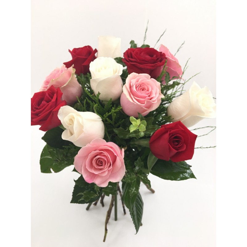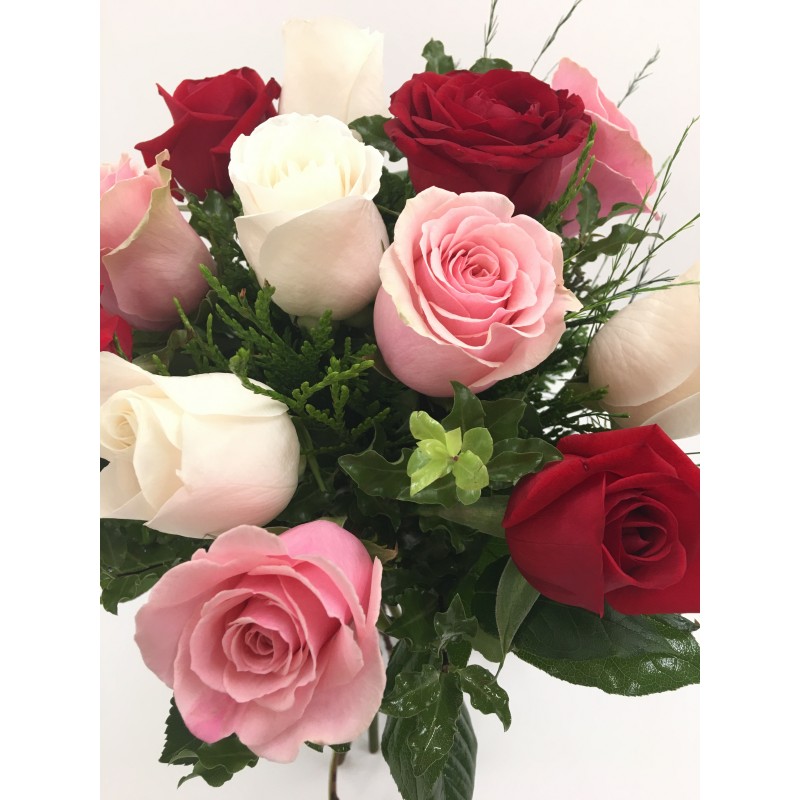 Bouquet 12,15 o 18 rosas multicolor cortas